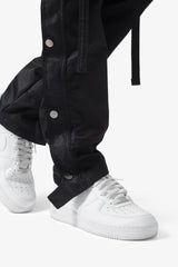the Snap Zipper II Cargo Pants are designed with an updated relaxed fit throughout, improved, stiffer fabric, with cargo pockets at the side seam, 4 snap closures at the outseam with a zipper underneath the entire length, velcro closure at the leg opening and finished with a built in belt made of self material.