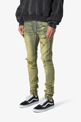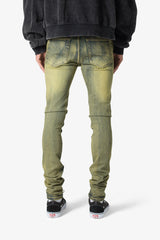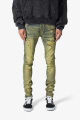 the X609 Algae Skinny Denim is designed with our X fit, which is skinny throughout with an extended inseam for stacking, and features a vintage blue wash with a green tint, and finished with distressing details.