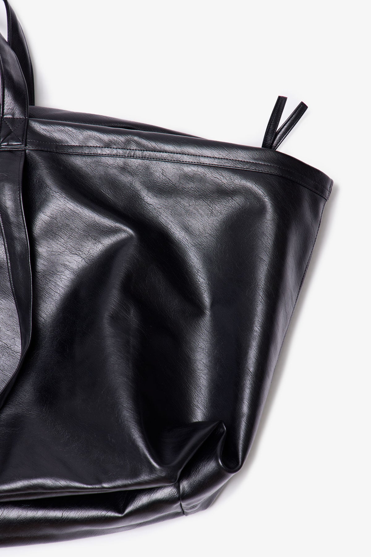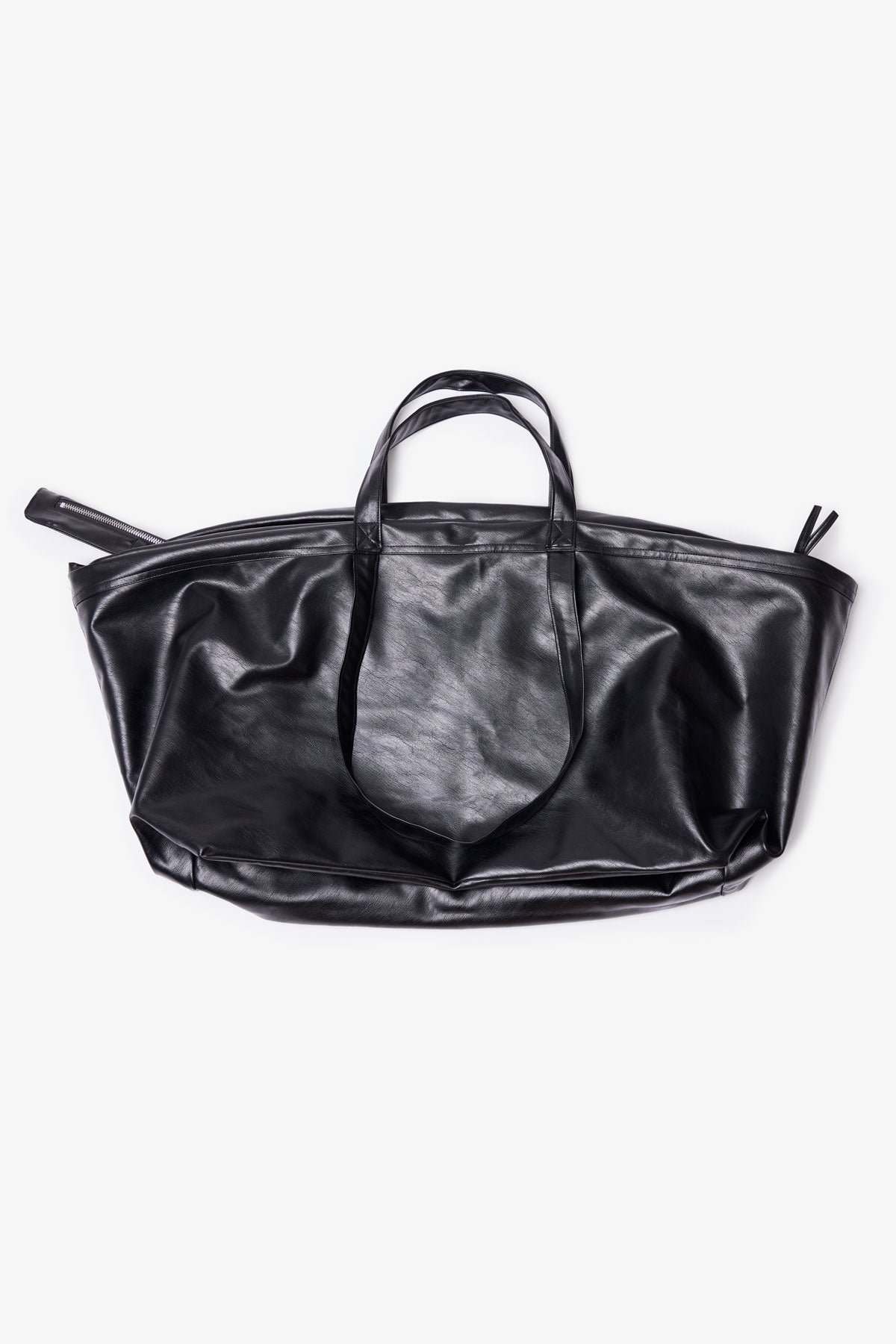 Confeccionada en piel sintética ligera con un suave brillo, la bolsa de viaje Leather Weekender Bag - Negra es un bolso extragrande diseñado para viajes cortos y uso diario. Cuenta con un amplio compartimento principal con cierre de cremallera metálica, asas superiores resistentes y una correa adicional para el hombro para mayor versatilidad. Además, incluye un bolsillo interior para guardar tus pertenencias de forma segura.