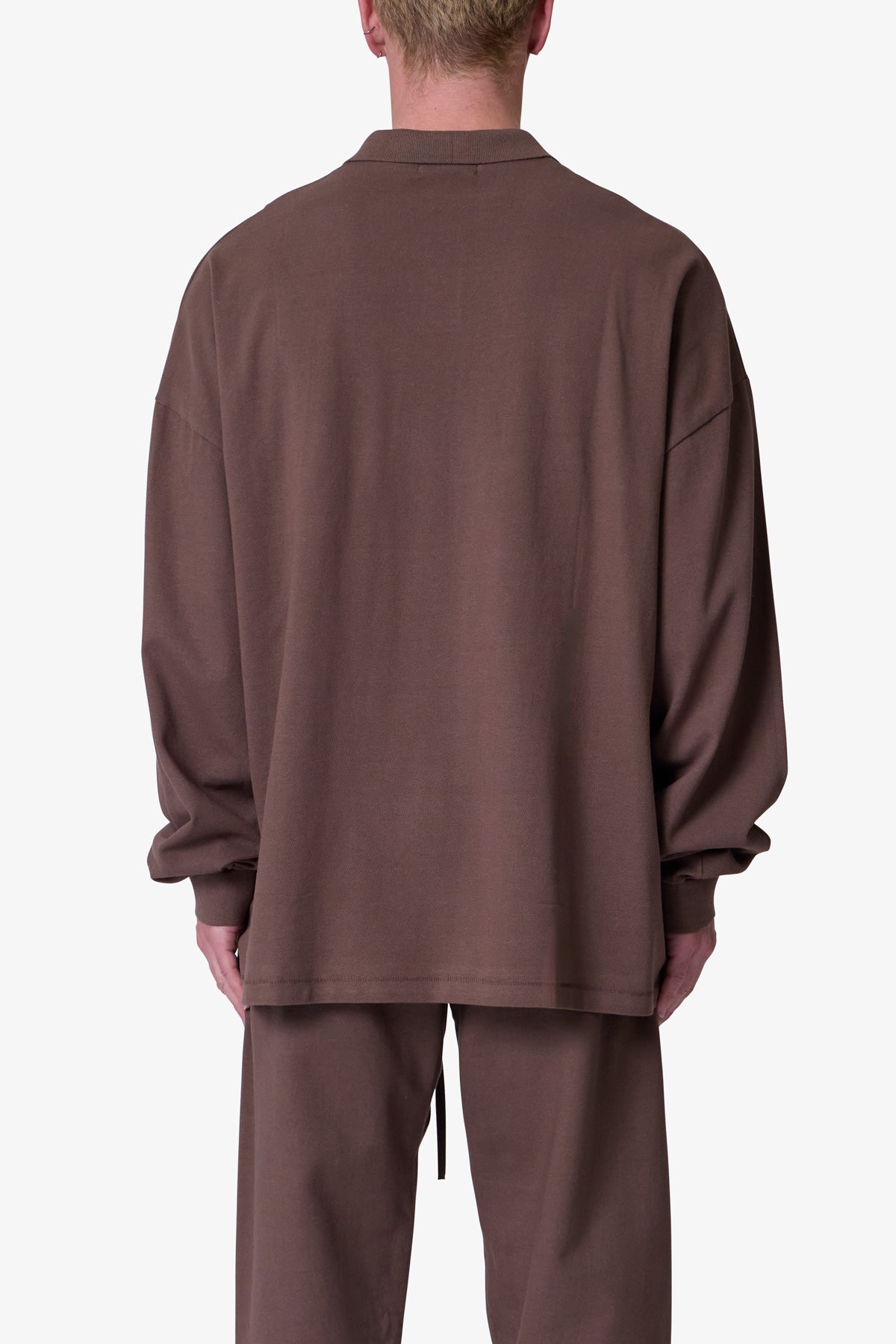 El polo de manga larga Every Day está hecho de Tejido piqué 100% algodón, con mangas largas y caída Diseño con hombros reforzados, ribete tonal en el cuello, la tapeta y los puños, y acabado con un lavado especial para una mejor sensación al tacto.
