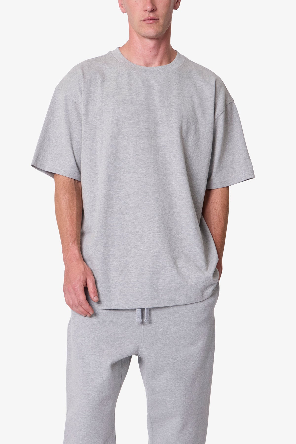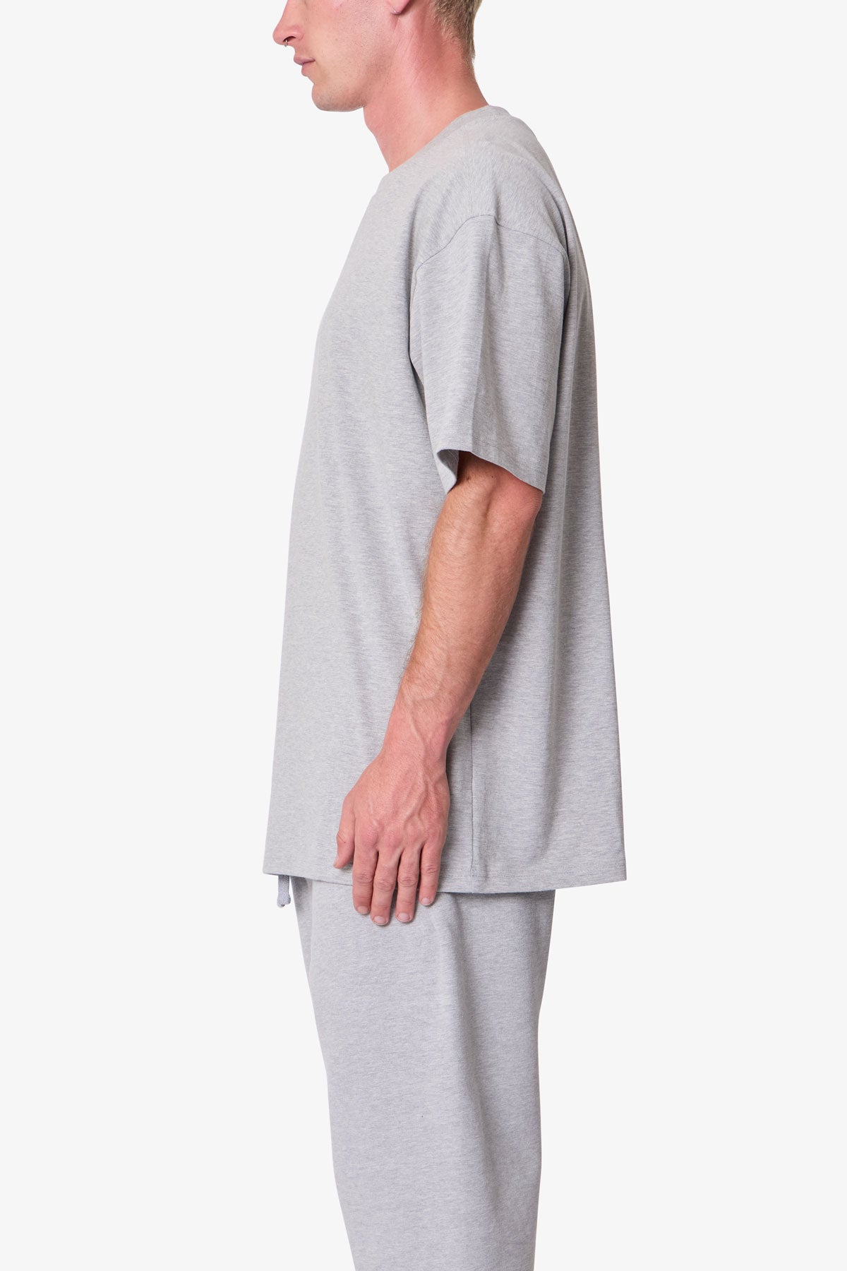 Confeccionada en jersey de algodón grueso de 300 g/m², la camiseta Heavy Basic presenta un corte relajado con hombros caídos. Diseñada con cuello acanalado y dobladillos con pespuntes de recubrimiento, su tejido prelavado ofrece una caída estructurada ideal para usar sola o combinada con otras prendas.