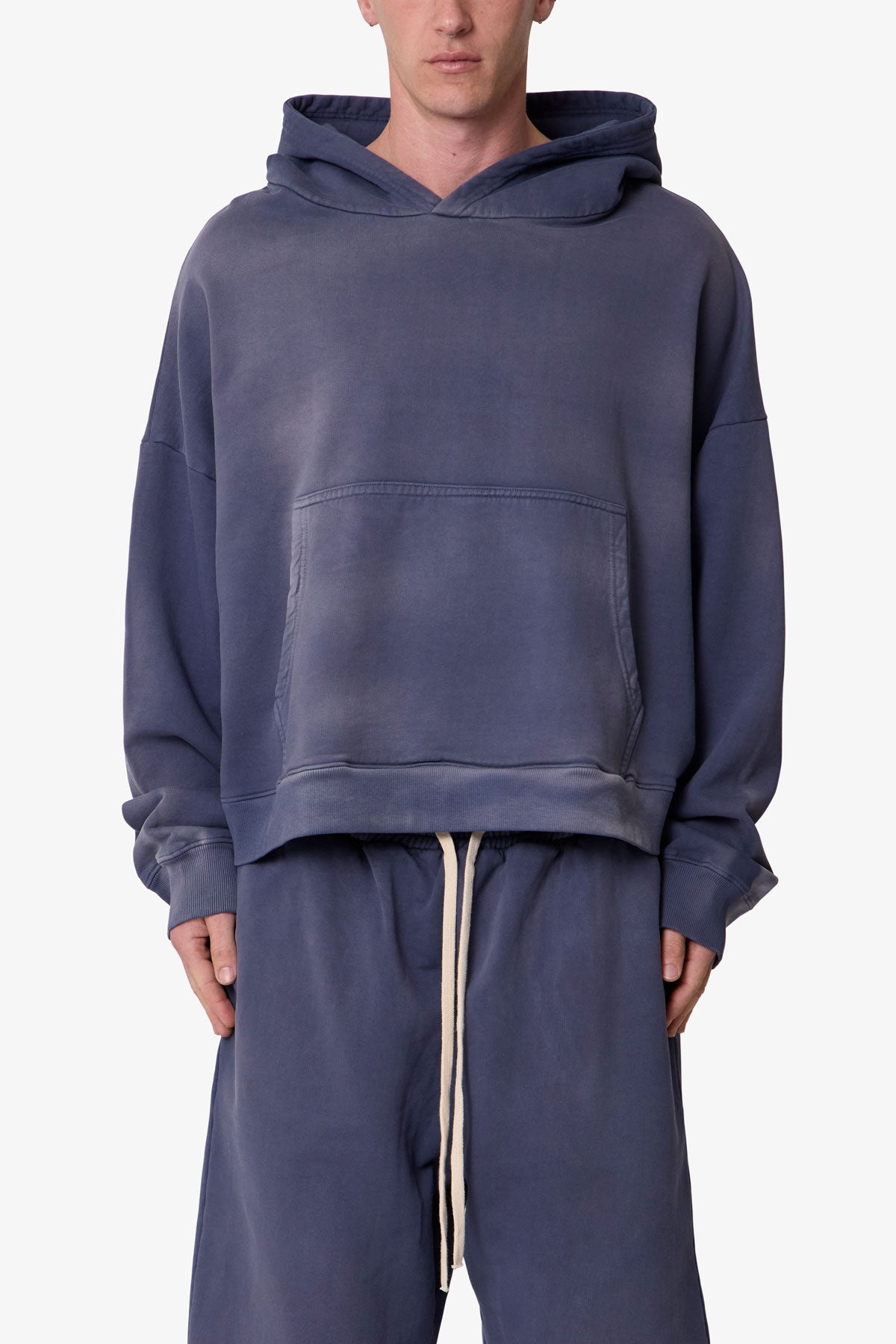 Constructed from 100% cotton fleece with a vintage wash, the Gradient Pullover Hoodie features a wide, cropped fit with a vintage wash. Designed with a pullover construction and front kangaroo pocket, it's finished with ribbed sleeve cuffs and a ribbed bottom opening.