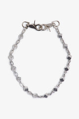 The Dice Wallet Chain - Silver is constructed from silver plated oxidized brass and features custom molded dice linked by jump chains. Designed with trigger hook clasps for secure attachment.