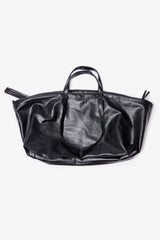 Constructed from a lightweight faux leather with a soft sheen, the Leather Weekender Bag - Black is an oversized carryall designed for short trips and everyday use. It features a spacious main compartment with a metal zip closure, sturdy top handles, and an additional shoulder strap for versatile carrying. Finished with an interior pocket for secure storage.