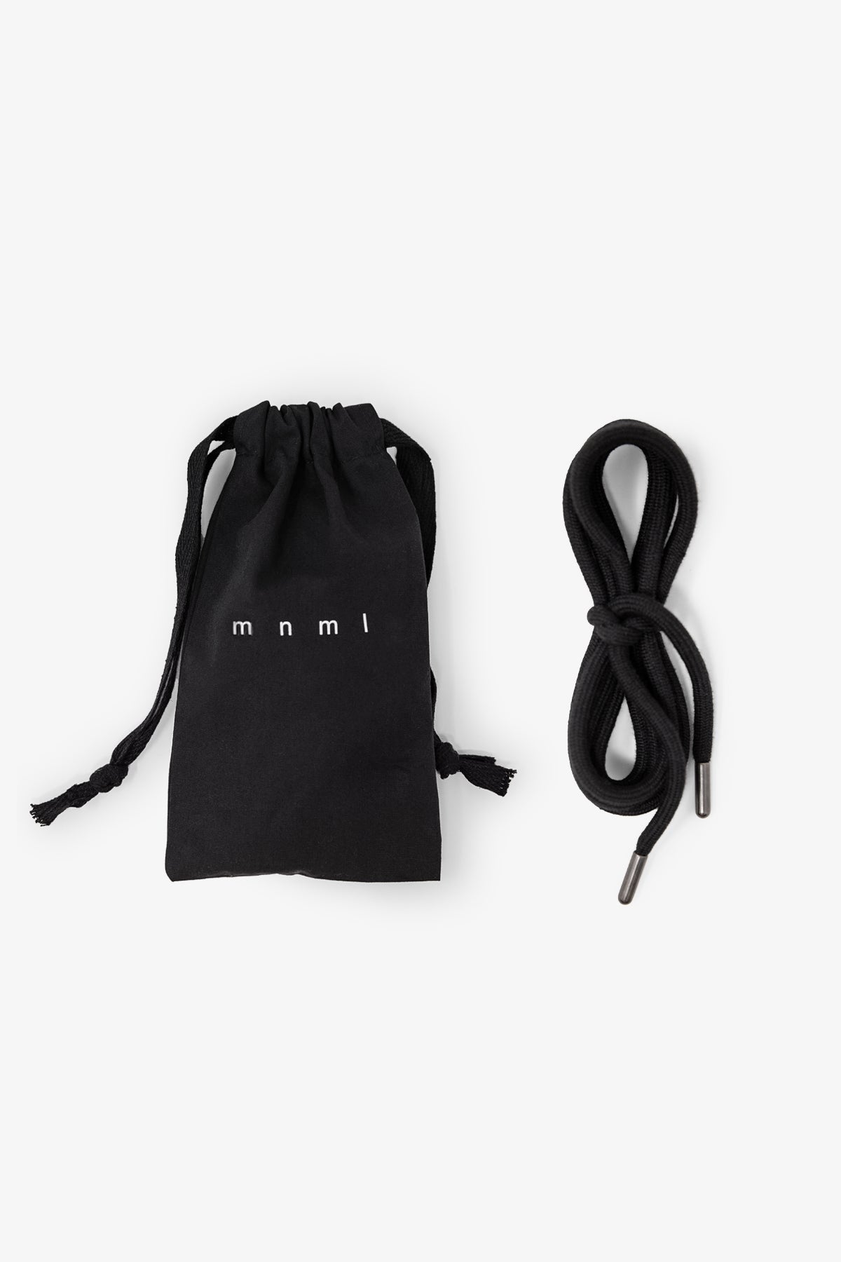 the Shoe Lace Belt is constructed of cotton round cordage with metal aglets and a screen printed cotton drawcord bag from denim pocket bag material.