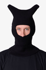 Constructed from a wool-acrylic blend, the Squared Balaclava features a full-face design with a horizontal opening across the eyes. The top section is squared off to extend above the head when worn. Finished with extended rib-knit detailing to provide full coverage over the neck.