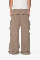 the Corduroy Rave Double Cargo Pants are designed with a new oversized rave fit, constructed from a cotton corduroy fabric, contrast drawcord, and finished with cargo pockets throughout.