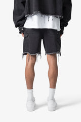 the Frayed Denim Shorts are designed with a relaxed fit throughout, featuring a garment washed denim fabric, and finished off with raw hem.