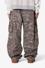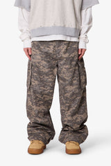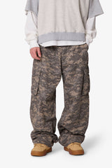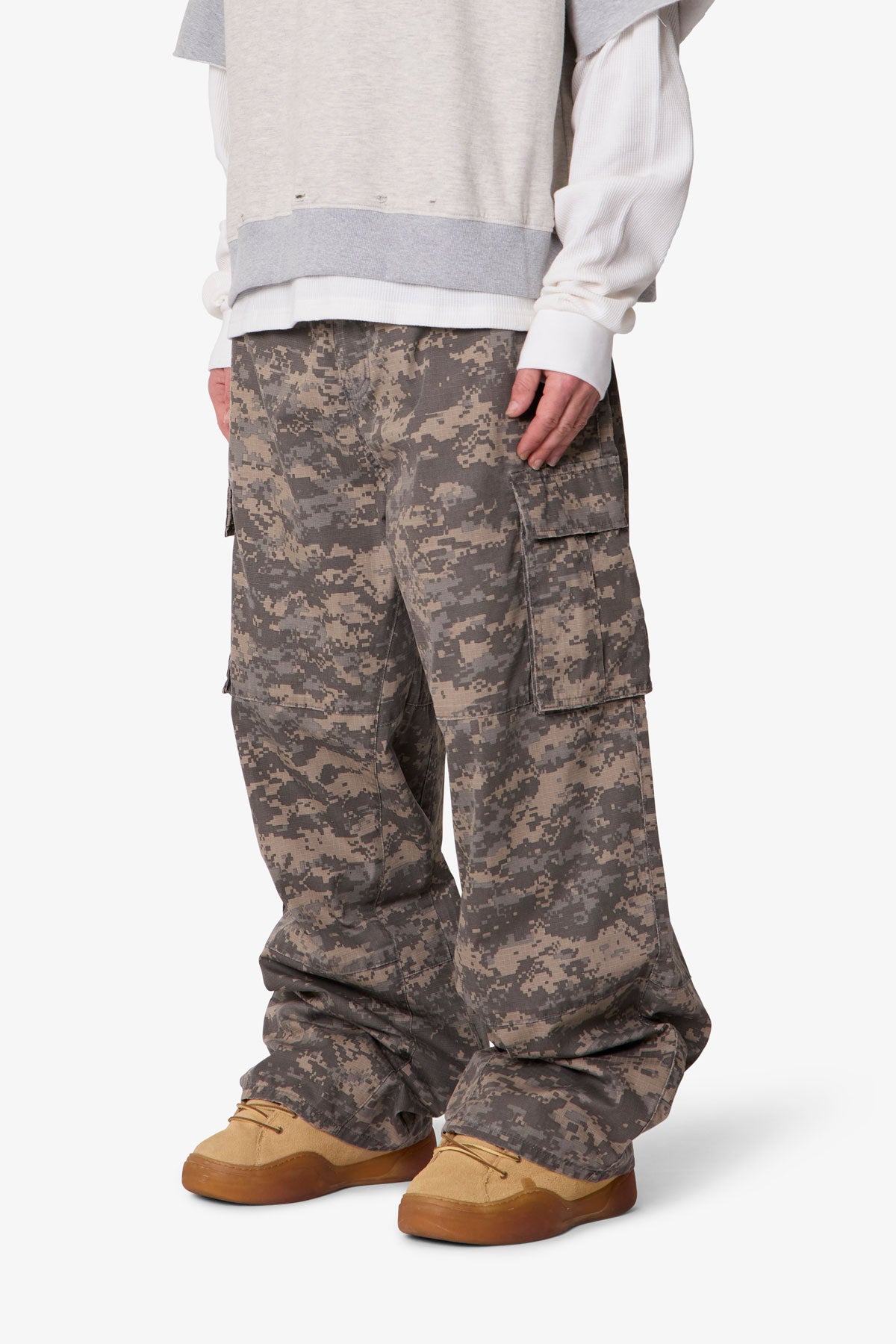 Crafted from 100% cotton ripstop, the Mega Baggy Cargo Pants feature a mega baggy oversized fit and wide legs. Designed with an adjustable internal drawcord at the waist, they provide versatility in fit. The pants are made with vintage washed fabric and have been given added sanding for a worn look. Side cargo pockets enhance functionality while maintaining a sleek silhouette.