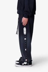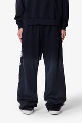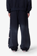 Constructed from 450 gsm cotton French terry with a vintage wash and PP spray treatment, the Mojave Sweatpant features a relaxed fit with a worn, sun-faded appearance. Designed with raw hems, faux leather patch and stud detailing along the side seams, and light distressing throughout. Finished with an elastic waistband, elongated drawcord, and functional front and back pockets.