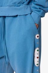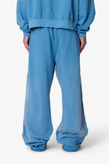 Constructed from 450 gsm cotton French terry with a vintage wash and PP spray treatment, the Mojave Sweatpant features a relaxed fit with a worn, sun-faded appearance. Designed with raw hems, faux leather patch and stud detailing along the side seams, and light distressing throughout. Finished with an elastic waistband, elongated drawcord, and functional front and back pockets.