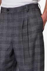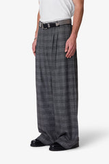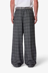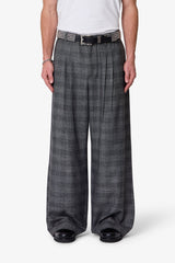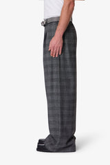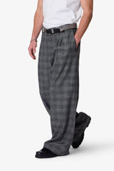 Constructed from a midweight polyester-cotton blend, the Plaid Barrel Trouser Pants feature a wide barrel leg fit designed for a relaxed silhouette. Detailed with two front pleats, a zip fly with French fly extension, and an elastic-back waistband. Finished with belt loops and welt pockets at the back.