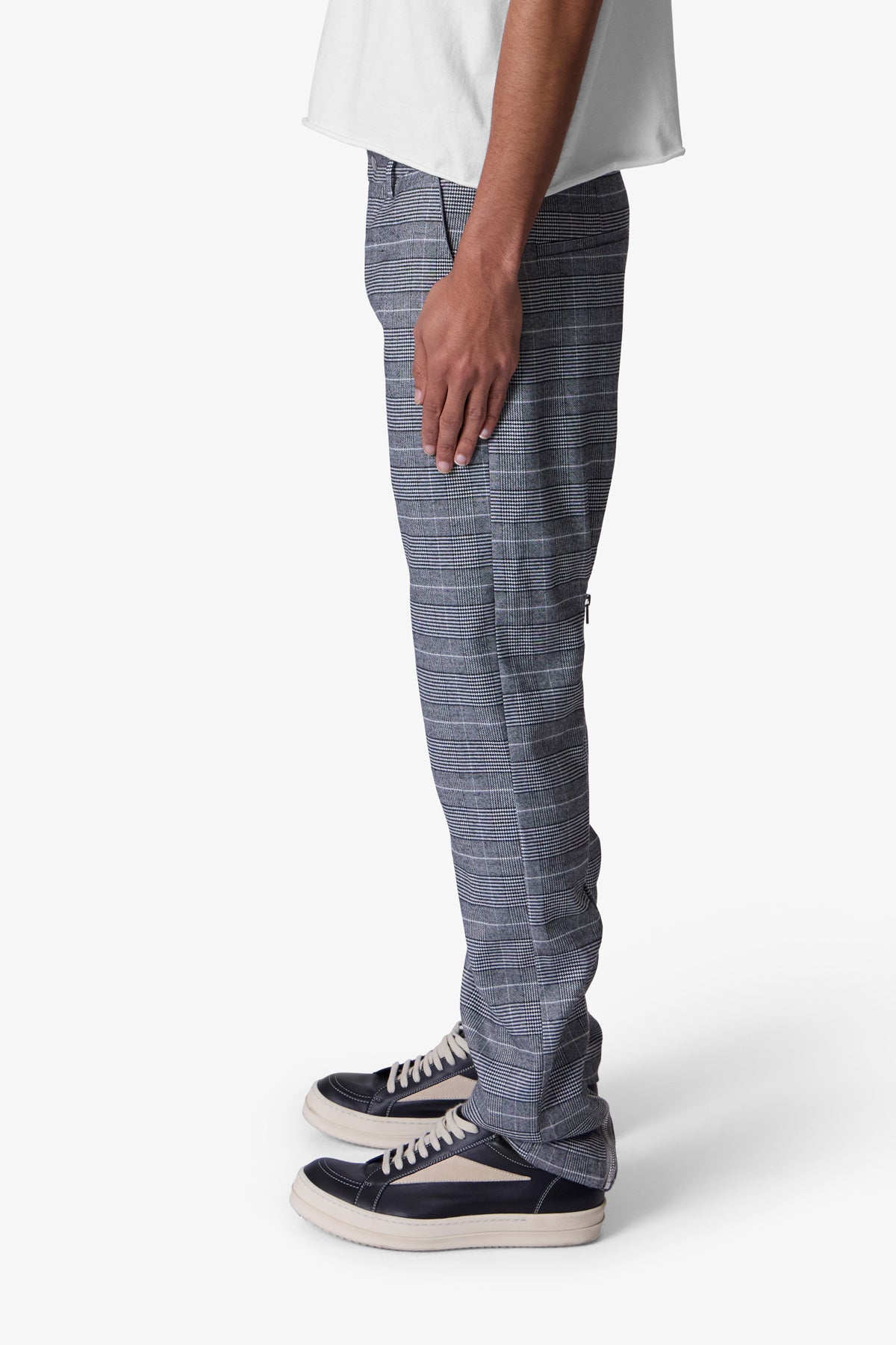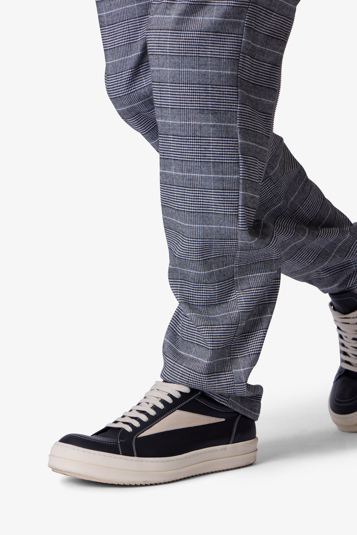 the Punk Zip Trouser Pants are designed with a baggy, relaxed fit throughout, featuring welt pockets at the outseam and patch pockets on the back, and is constructed from a custom developed plaid synthetic blend fabric.