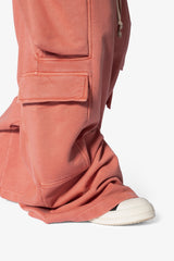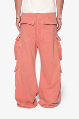 the Rave Double Cargo Sweatpants are designed with a new oversized rave fit, constructed from a cotton fleece fabric, contrast drawcord, and finished with cargo pockets throughout.
