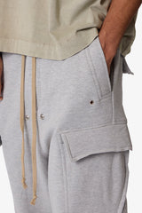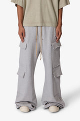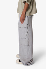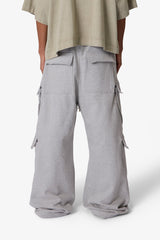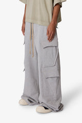 the Rave Double Cargo Sweatpants are designed with a new oversized rave fit, constructed from a cotton fleece fabric, contrast drawcord, and finished with cargo pockets throughout.
