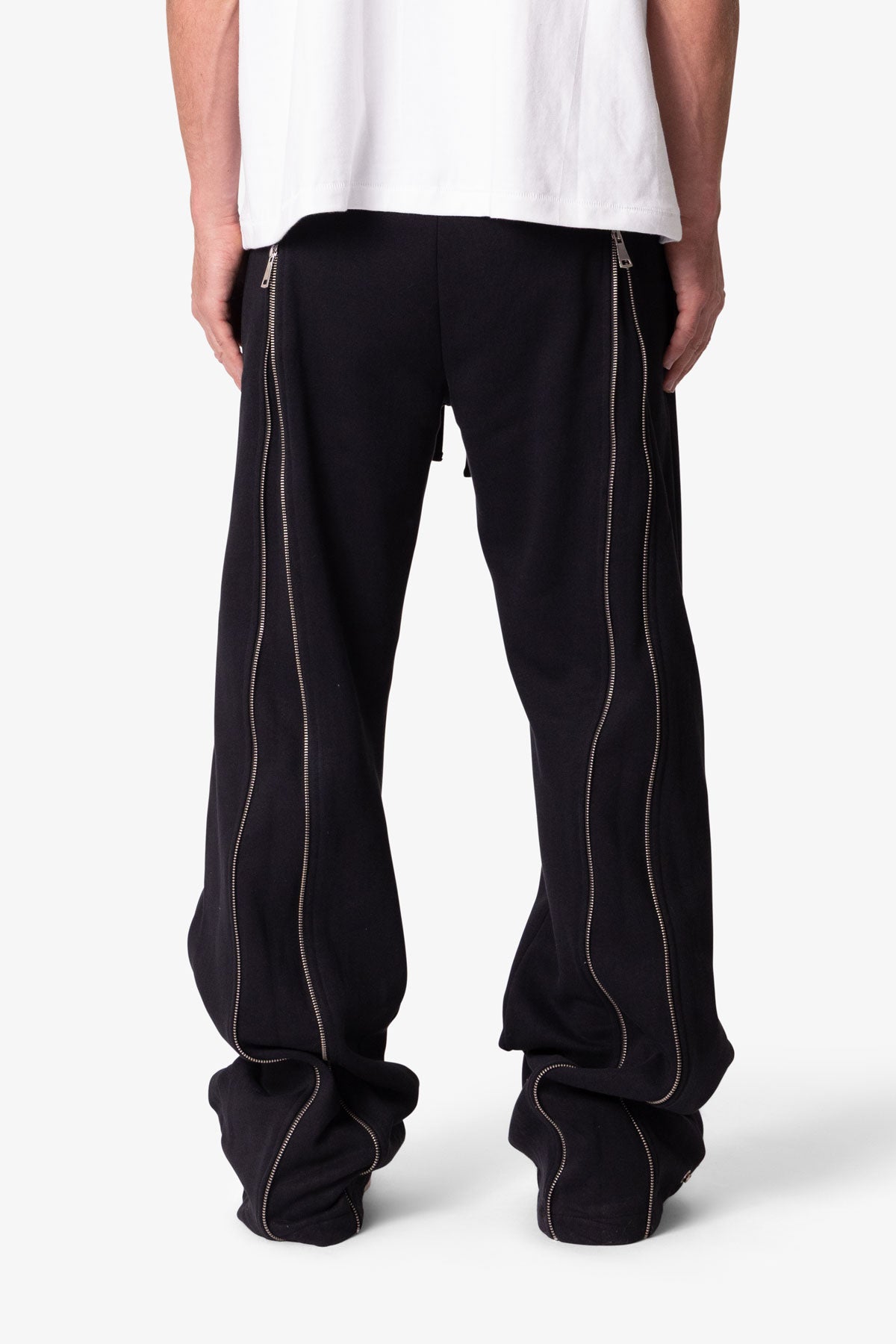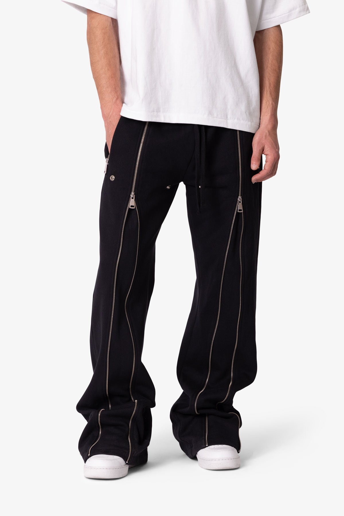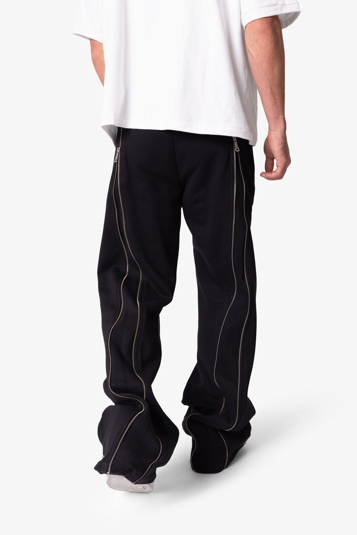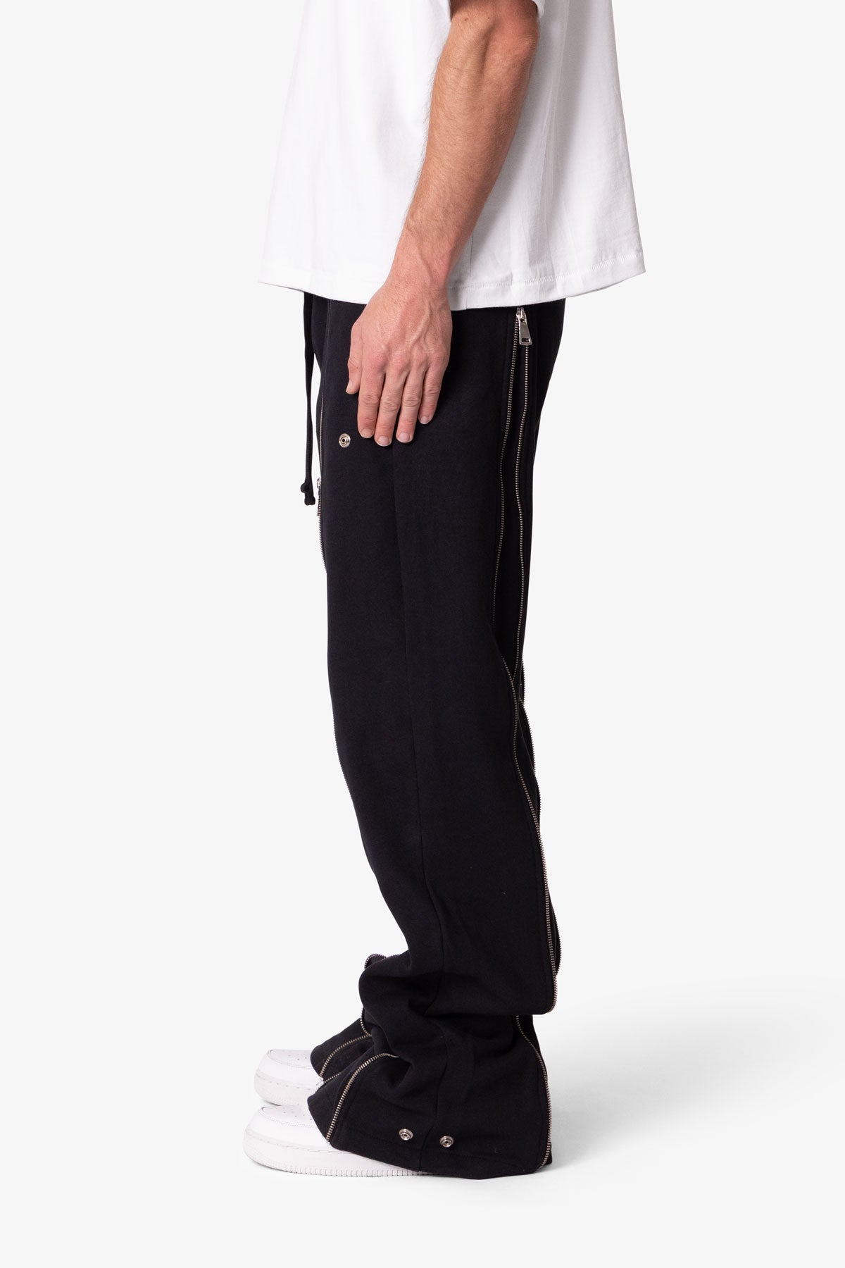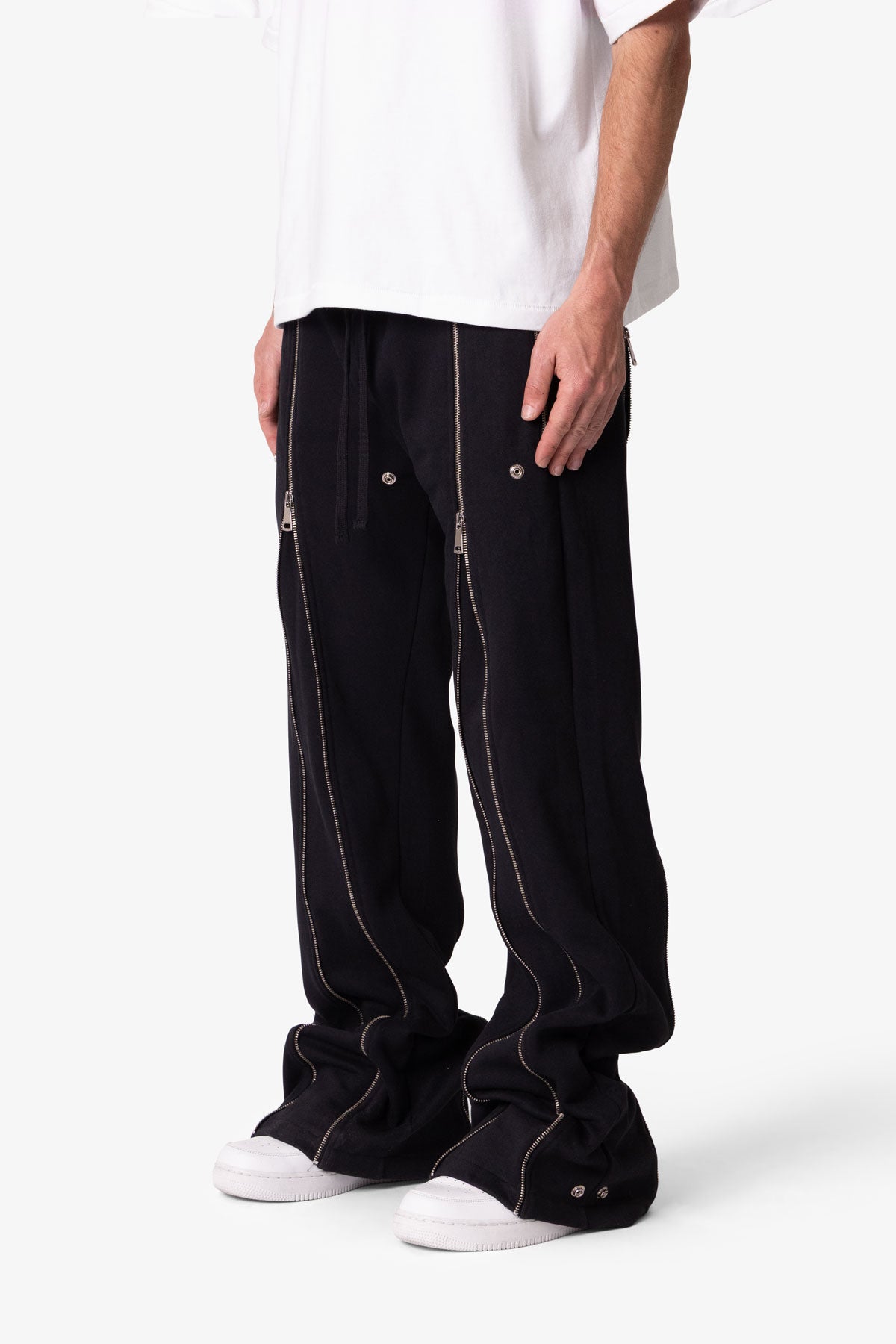 The Rivet Zipper Flare Sweatpants are made from 100% cotton 450 gsm fleece, offering a relaxed fit that combines comfort with versatility. The functional zipper runs from the waistback to the bottom opening, allowing for an adjustable fit and the option to create a flared silhouette. Zippered side pockets and rivet details enhance the design.