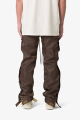 Constructed from lightweight nylon with a subtle sheen, the Snap Front Cargo Pants feature a relaxed silhouette and functional detailing. Designed with a decorative side seam placket and snap button hardware, the ankle snaps can be opened to create a flared opening. Finished with front and back cargo pockets, side zipper pockets, and an elastic waistband with a drawcord.