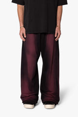 the Sprayed Ultra Baggy Sweatpants are designed with an ultra baggy fit throughout, featuring an elasticized self waist, cotton drawstrings, standard hem at the leg opening, and finished in both a tinted spray wash and brushed fleece fabric.
