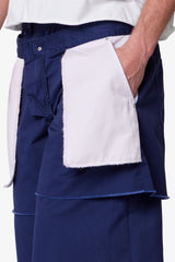 The Ultra Baggy Inside Out Shorts are constructed from 100% cotton workwear twill with a garment wash for a broken-in finish. Designed with a deconstructed aesthetic, the shorts feature an exaggerated baggy fit with layered panels that reveal visible pocket bags. Finished with raw edges and distressed detailing, the Ultra Baggy Inside Out Shorts offer a rugged, worn-in appearance.