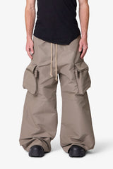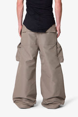Constructed from 250 gsm polyester, the Zip Cargo Pocket Rave Pants feature a baggy silhouette with a long front and back rise. Designed with large zip-closure cargo pockets at the sides, panel detailing, and a flared opening, the pants are finished with an elastic waistband, elongated drawcord, and functional back flap pockets.