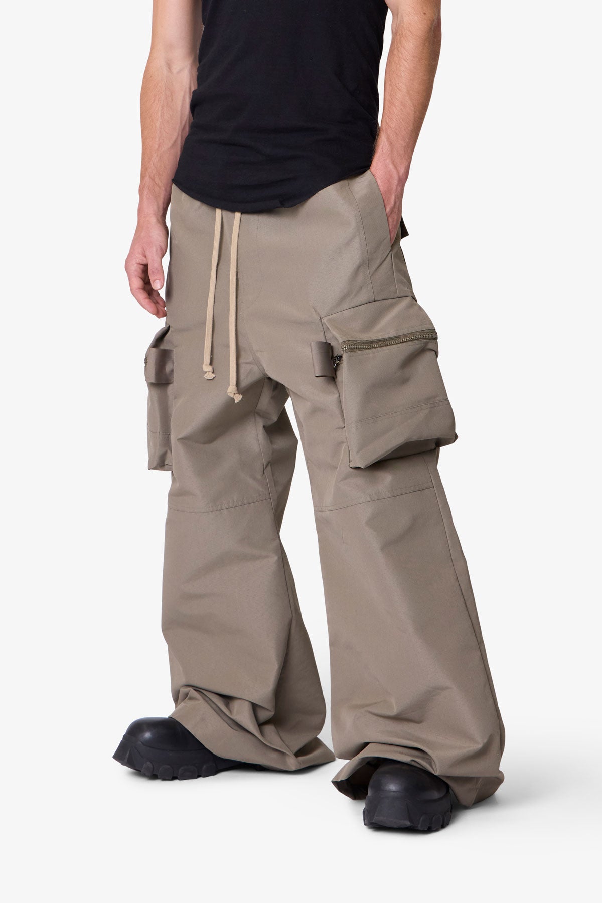- Large side cargo pockets with zip closures