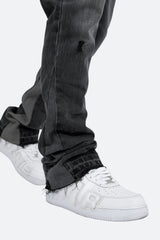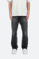 the B476 Flare Denim are designed with our new B fit, which is slim through the thigh and features a slight flare at the leg opening and is constructed from washed black denim, contrast panelling at the inseam and outseam from contrasting denim for a slight flare and finished with a deconstructed hem.