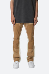 the B501 Flare Denim are designed in our B fit, which is slim through the thigh and features a slight flare at the leg opening and is constructed from washed duck twill, work pants panelling removed after wash for contrasting wash area, panelling at the inseam and outseam for a slight flare, and finished with a deconstructed hem.