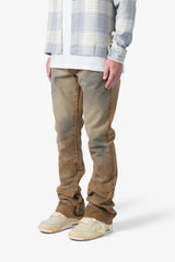 the B643 Flare Burnt Cowboy Denim are designed in our B fit, which is relaxed through the thigh and features a slight flare at the leg opening and is constructed from washed tan work twill, heavy sanding details throughout for a more vintage feel and look, and finished with a traditional hem.