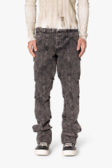 the B648 Side Pinned Flare Denim is designed with our new B fit, which is slim through the thigh and features a slight flare at the leg opening. It is constructed from 100% cotton, vintage charcoal washed denim, and finished with technical pinning along the inseam and out-seam to reveal a "ripple" effect.
