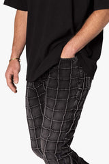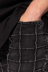 the B665 Pleated Square Flare Denim are designed with our new B fit, which are relaxed through the thigh and features a slight flare at the leg opening. Constructed from vintage washed black denim, the gridded stitching and design offers an illusive look.