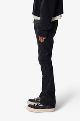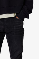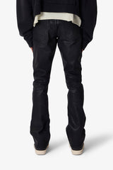 the B729 Waxed Denim are designed with our new B fit, which is relaxed through the thigh and features a slight flare at the leg opening and is constructed from washed black denim finished with a waxed coating, panelling at the knee, and finished with a traditional hem.