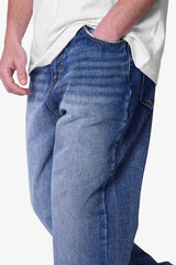 the new Baggy Denim are designed with our new and updated baggy fit, which is relaxed throughout for increased comfort and updated look, and is constructed from 100% 13 oz indigo cotton denim with a medium vintage wash, and finished with traditional five pocket denim details.