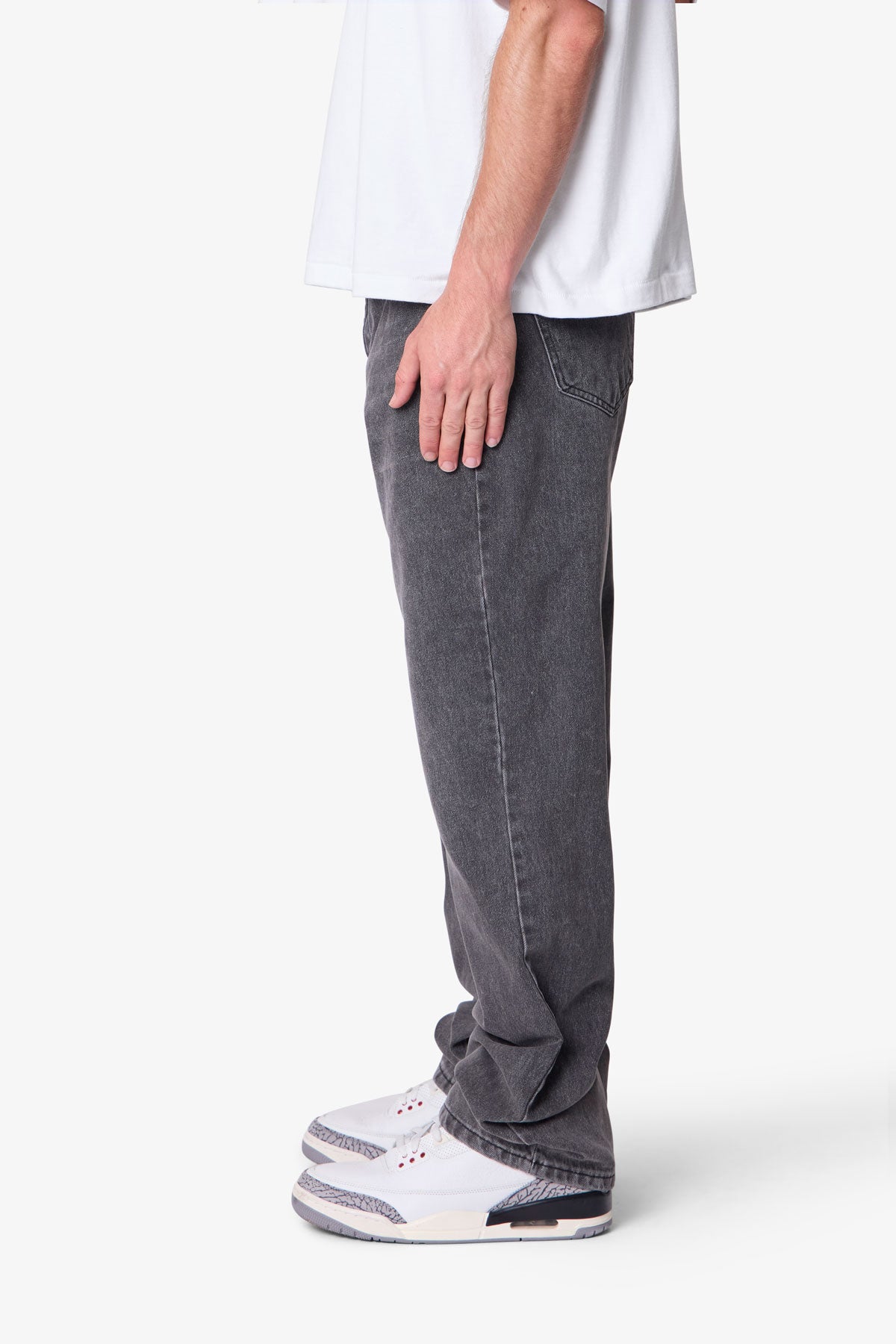 Constructed from 100% cotton denim with a dark sand washed finish, the Baggy Denim features a loose silhouette with light sanding throughout. Designed with a classic 5-pocket configuration, belt loops, and a button fly closure.
