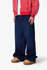 The Baggy Rave Denim is crafted from 100% cotton for a comfortable fit. Designed with a baggy rave silhouette, it features light sanding and subtle distressing at the seams and hems for a worn-in look. The jeans are finished with a standard waistband, five-pocket layout, and a button fly.