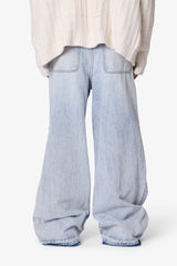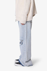the Baggy Rave Denim are designed with a new oversized rave fit, constructed from a washed denim, distressing throughout, and finished with a deconstructed hem.