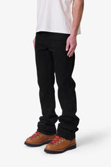 the new Raw Bootcut Denim is made from deep black 13 oz cotton denim that keeps the look of raw with a single rinse to reduce dye transfer and shrinkage. The color stays rich, the structure stays sharp, and the fabric softens slightly for a more comfortable wear from day one. These bootcut denim are designed with our new and updated bootcut fit, which is relaxed through the thigh and features a slight flare at the leg opening and are finished with traditional five pocket denim details.