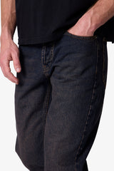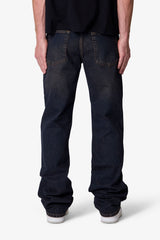 The Bootcut Denim is crafted from 100% cotton denim, featuring a classic bootcut fit. Designed with a subtle whiskering effect and a brown tint, it combines both comfort and style. The traditional five-pocket design includes standard belt loops and a reliable button fly for functionality.