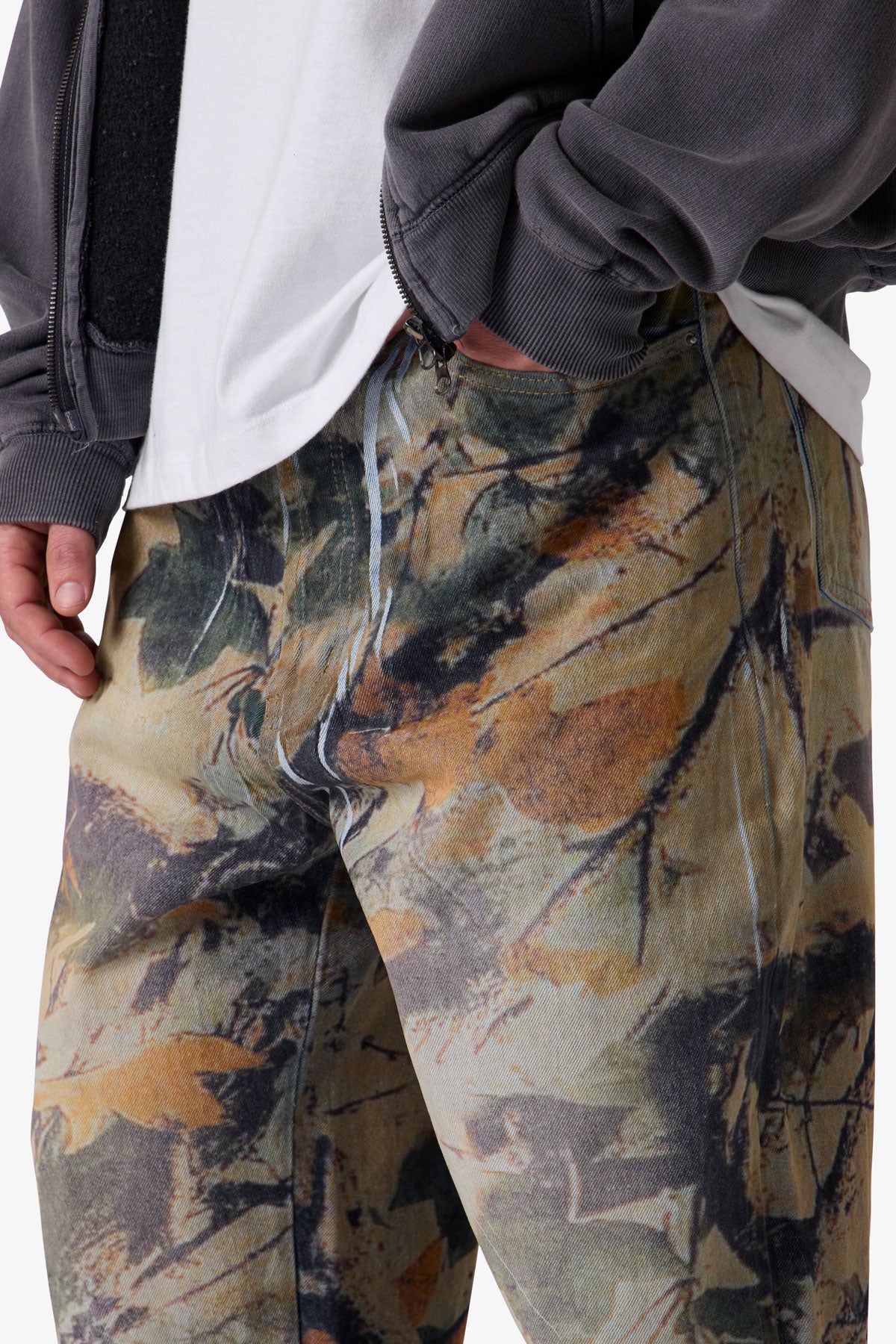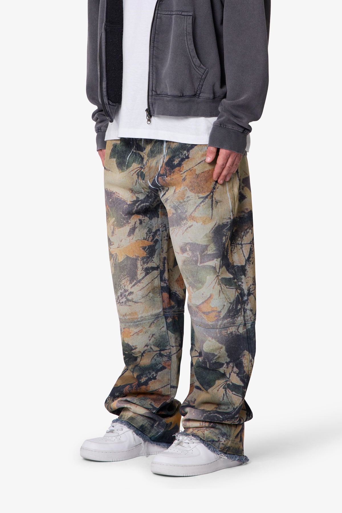- Light stone wash with leaf camo print