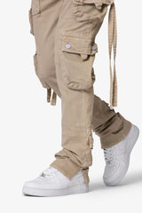 the DD152 Cargo Straight Denim is designed with our new D fit which is relaxed throughout and an extended inseam for stacking, but also has a slightly longer rise and increased width in the thigh from our standard D fit. The D152 Strapped Cargo Denim also features cargo pockets at the outseam with cotton webbing closures.