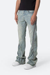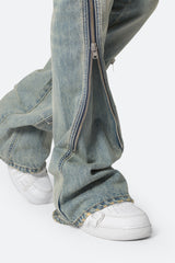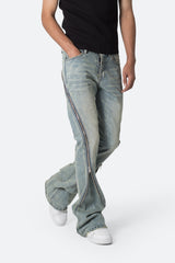 the D519 Zipper Flare Denim is designed with our D fit which is straight throughout, zipper detail extending from the thigh to the shin to provide a flare fit through the leg, and is constructed from black denim.