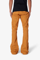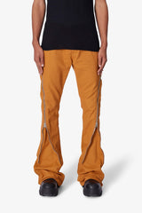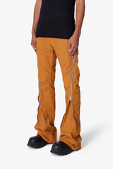 the D519 Zipper Flare Denim is designed with our D fit which is straight throughout, zipper detail extending from the thigh to the shin to provide a flare fit through the leg, and is constructed from orange denim.