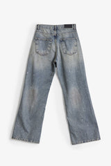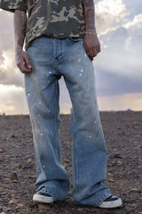The G:04 Painted Denim features a relaxed bootcut fit with a wider flare and a light wash finish. Crafted from 100% cotton denim, this design includes light whiskering, sanding at the thighs and back, subtle distressing at the hem, and allover paint splatter detailing. Finished with a five-pocket construction, belt loops, a button fly, and a custom LWH logo jarcon.