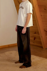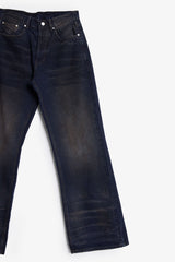The G:04 Relaxed Flare Denim is constructed from 100% cotton denim in a bootcut silhouette with a wide flare. It features a dark wash finish with a vintage brown tint, light sanding and whiskering along the front, and subtle distressing at the hem. Designed with a relaxed fit through the thigh and standard five-pocket construction, it’s finished with a button fly, belt loops, and a custom LWH logo jarcon on the waistband.