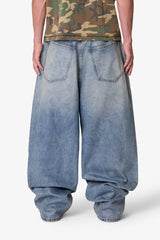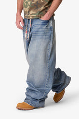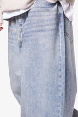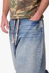 Constructed from 100% cotton denim with a stone wash and wax coating, the Mega Baggy Waxed Denim features a heavily oversized fit with wide legs and an adjustable drawcord waist. Designed with sanding and whiskering throughout, it’s finished with a button fly and standard five-pocket construction.