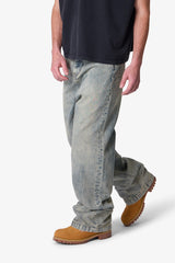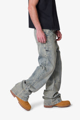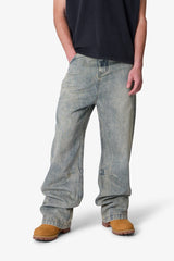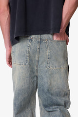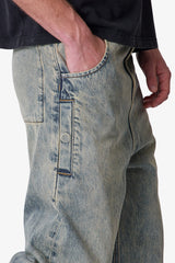 Constructed from 13 oz stone-washed blue denim, the Baggy Moto Denim features a baggy fit with a subtle barrel leg shape and articulated darting at the knees. Designed with a standard mid rise and traditional back yoke, the denim is finished with an uneven faded effect for a vintage appearance. The Moto Denim includes a classic 5-pocket layout with an additional snap-enclosed side pocket.