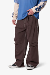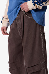 Crafted from 100% cotton, the Raw Pleated Denim features a wide and baggy fit designed in a barrel silhouette. It includes pleat details at the knee and contrasting washed seams for added dimension. The standard waistband and standard 5-pocket design are complemented by a button fly for a functional finish.