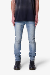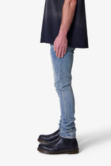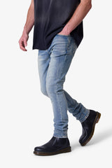 the new Skinny Denim are designed with our new and updated skinny fit, which is skinny throughout for increased comfort and updated look, and is constructed from stretch 13 oz indigo cotton denim with a medium vintage wash, and finished with traditional five pocket denim details.