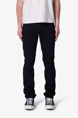 the new Slim Denim are designed with our new and updated slim fit, which is slim throughout for an updated look, and is constructed from 13 oz black stretch cotton denim with a light rinse wash, and finished with traditional five pocket denim details.