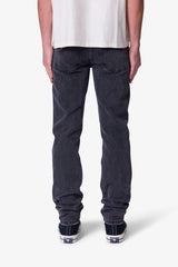 the new Slim Denim are designed with our new and updated slim fit, which is slim throughout for an updated look, and is constructed from 13 oz black stretch cotton denim with a vintage wash, and finished with traditional five pocket denim details.