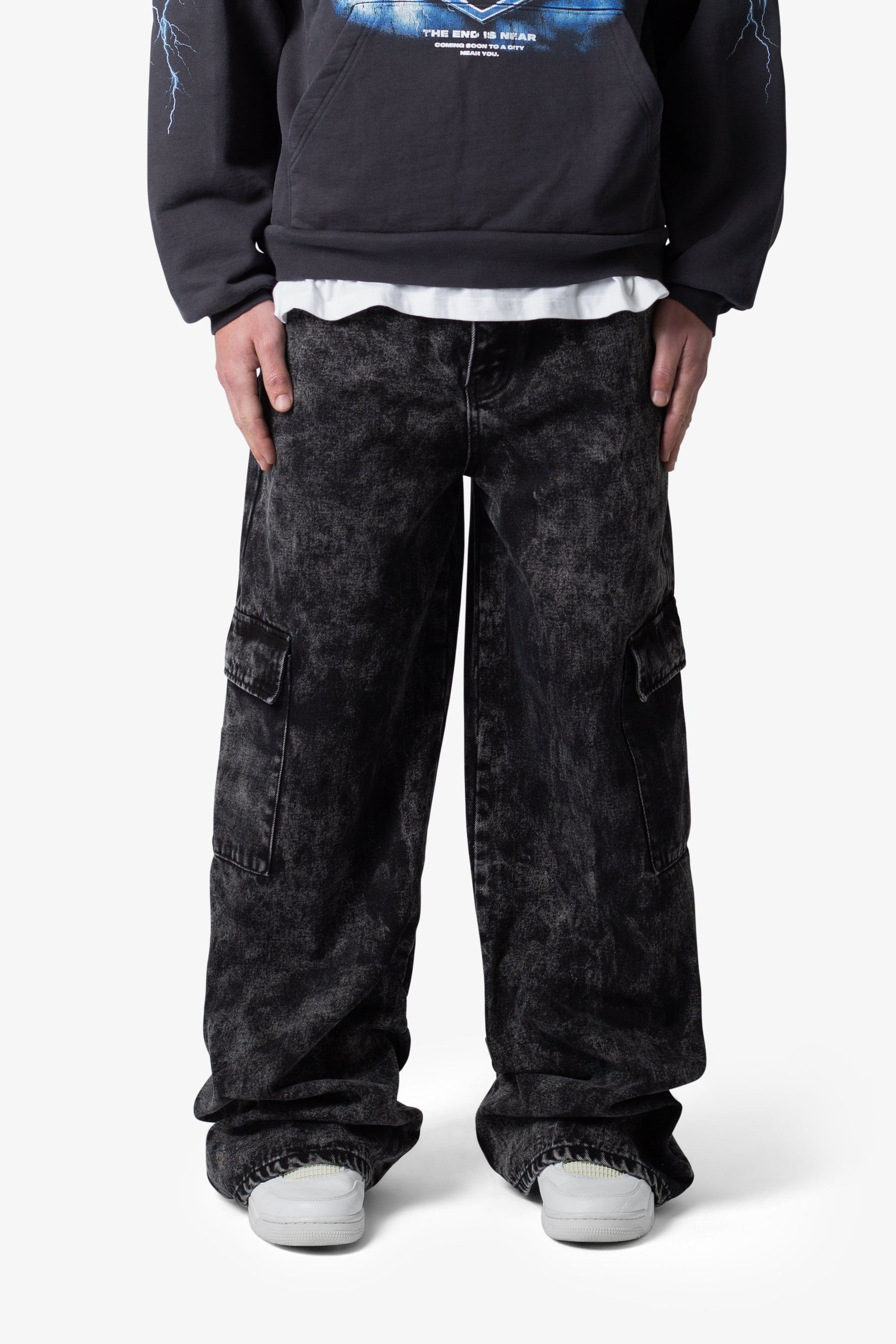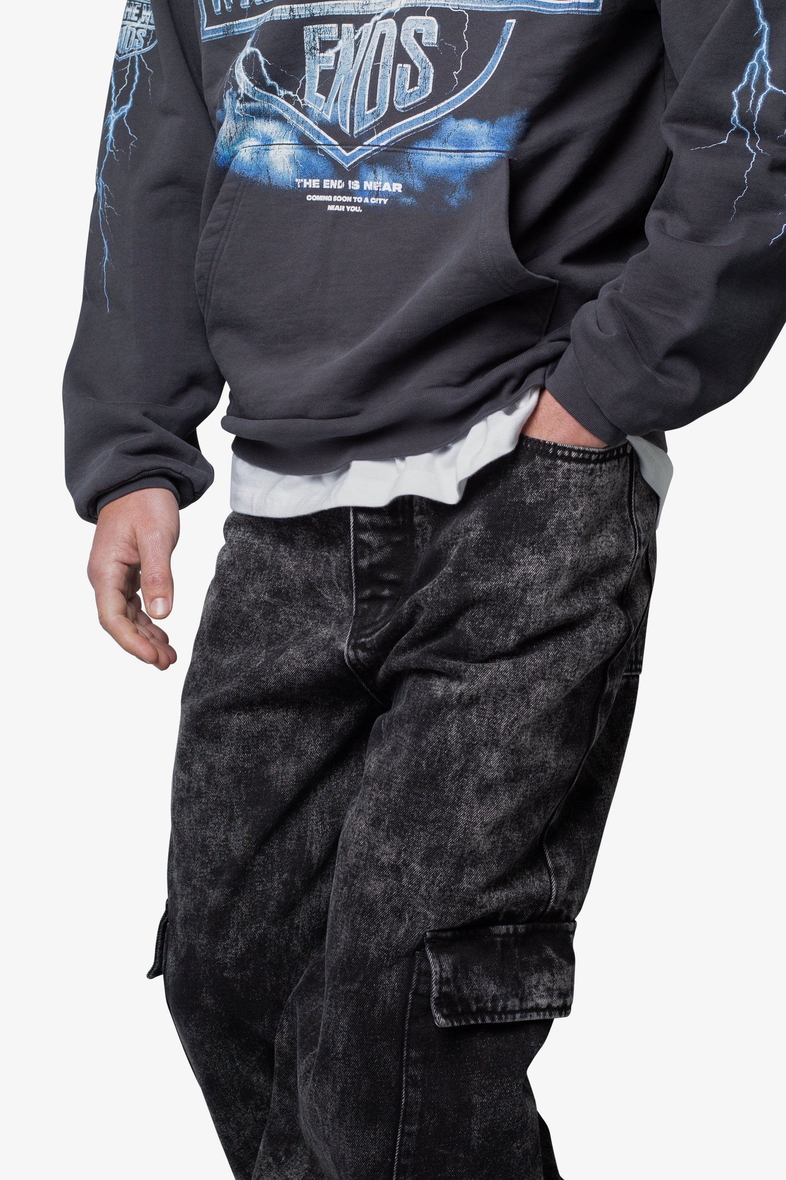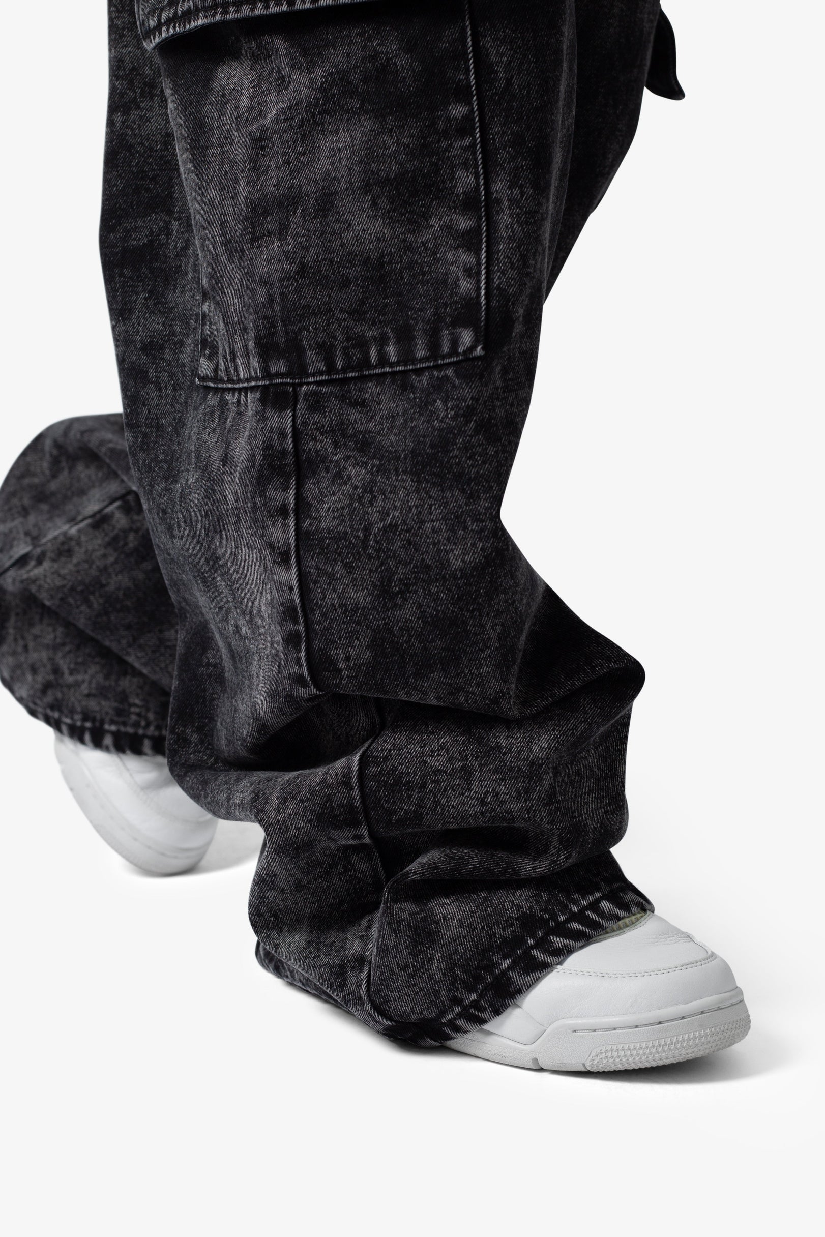 the Void Baggy Cargo Denim is a bold addition to our collection. Featuring our latest Void fit with extra room in the waist, hip, and leg opening, along with an extended inseam from our Rave Fit. Constructed from vintage washed black cotton-polyester denim, embracing traditional 5 pocket denim details, and completing with oversized cargo pockets at the outseam.